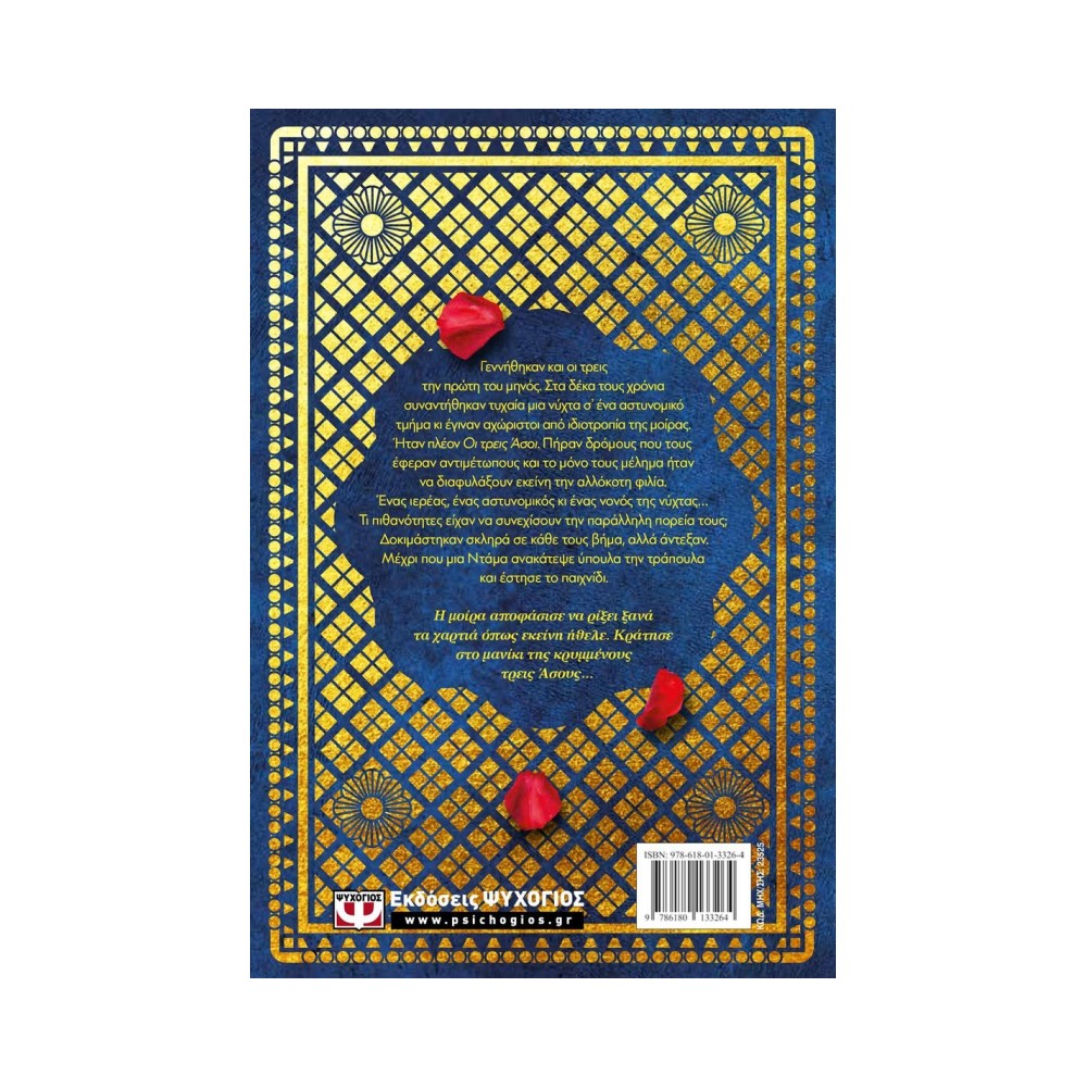 Γεννήθηκαν και οι τρεις την πρώτη του μηνός. Στα δέκα τους χρόνια συναντήθηκαν τυχαία μια νύχτα σ? ένα αστυνομικό τμήμα κι έγιναν αχώριστοι από ιδιοτροπία της μοίρας. Ήταν πλέον Οι τρεις ʼσοι. Πήραν δρόμους που τους έφεραν αντιμέτωπους και το μόνο τους μέλημα ήταν να διαφυλάξουν εκείνη την αλλόκοτη φιλία. Ένας ιερέας, ένας αστυνομικός κι ένας νονός της νύχτας… Τι πιθανότητες είχαν να συνεχίσουν την παράλληλη πορεία τους; Δοκιμάστηκαν σκληρά σε κάθε τους βήμα, αλλά άντεξαν. Μέχρι που μια Ντάμα ανακάτεψε ύπουλα την τράπουλα και έστησε το παιχνίδι. Η μοίρα αποφάσισε να ρίξει ξανά τα χαρτιά όπως εκείνη ήθελε. Κράτησε στο μανίκι της κρυμμένους τρεις ʼσους…