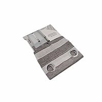 Κουρτίνες ριγέ μεταλλικούς κρίκους. Χρώματα: Γκρι ανοιχτό, Γκρι σκούρο, μπλέ.