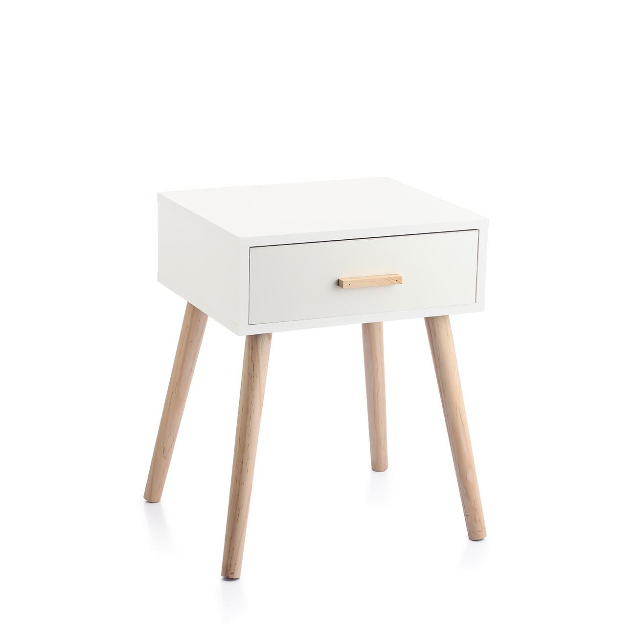 Εξαιρετικής αισθητικής κομοδίνο με συρτάρι και με ξύλινα πόδια και MDF επιφάνεια σε 2 αποχρώσεις.